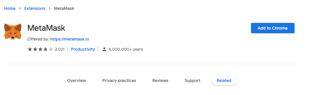 VisitMetamask on the Chrome Web Store, and click add to chrome to install.